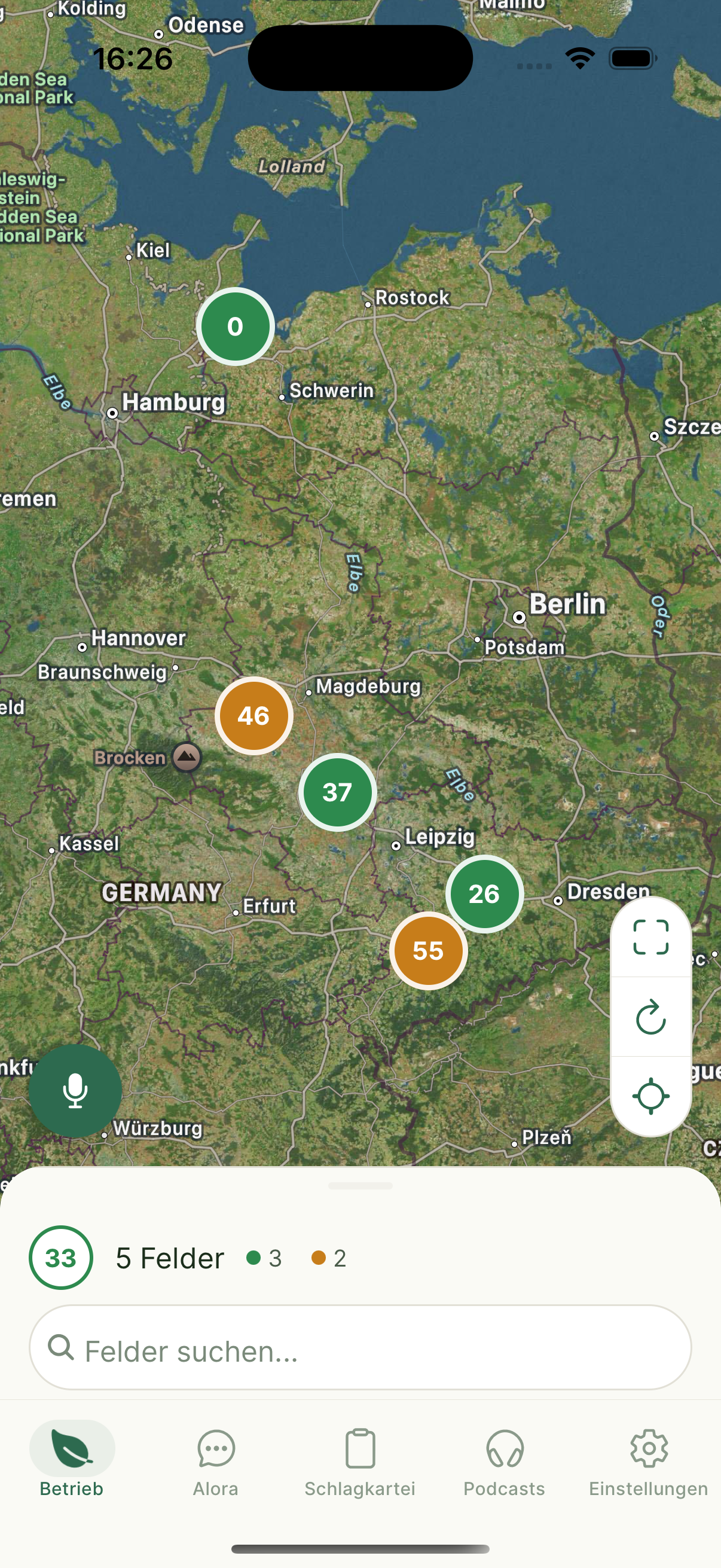 Alle Kundenschläge in einer Plattform. Bodendaten, Schlaghistorie und Status — in Sekunden abrufbar.