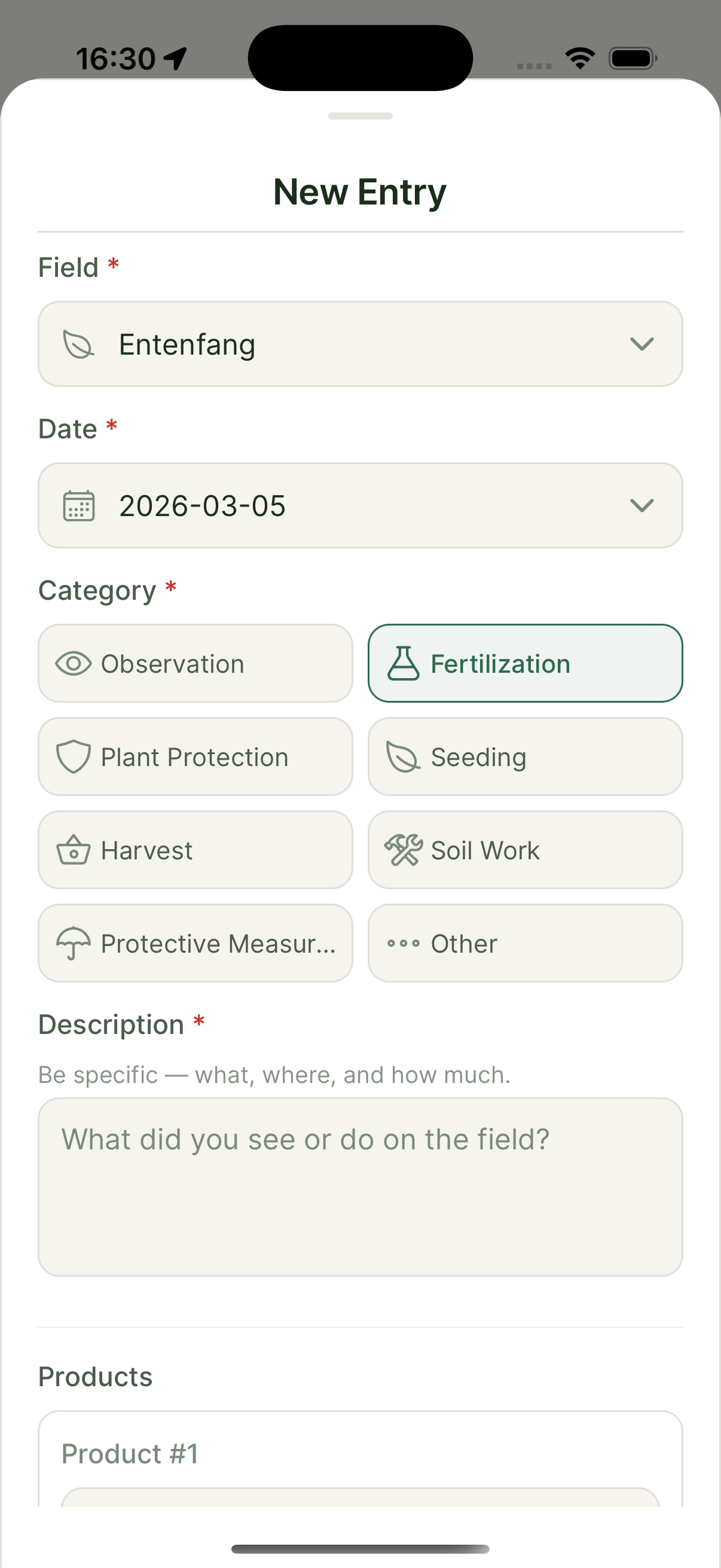 Log field activities in the app or tell Alora by voice — she records everything